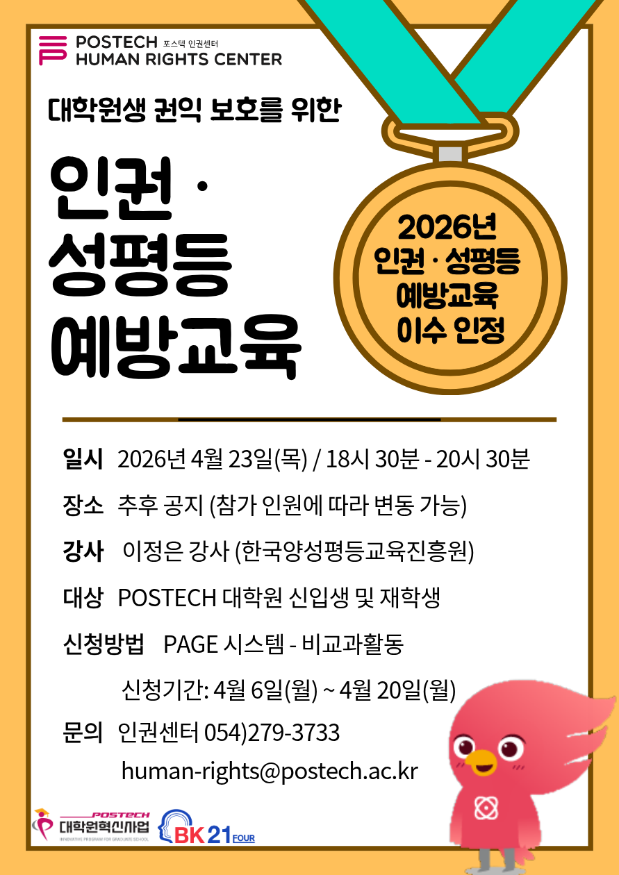 ⊙ 문의: 인권센터 054-279-3732~4, human-rights@postech.ac.kr